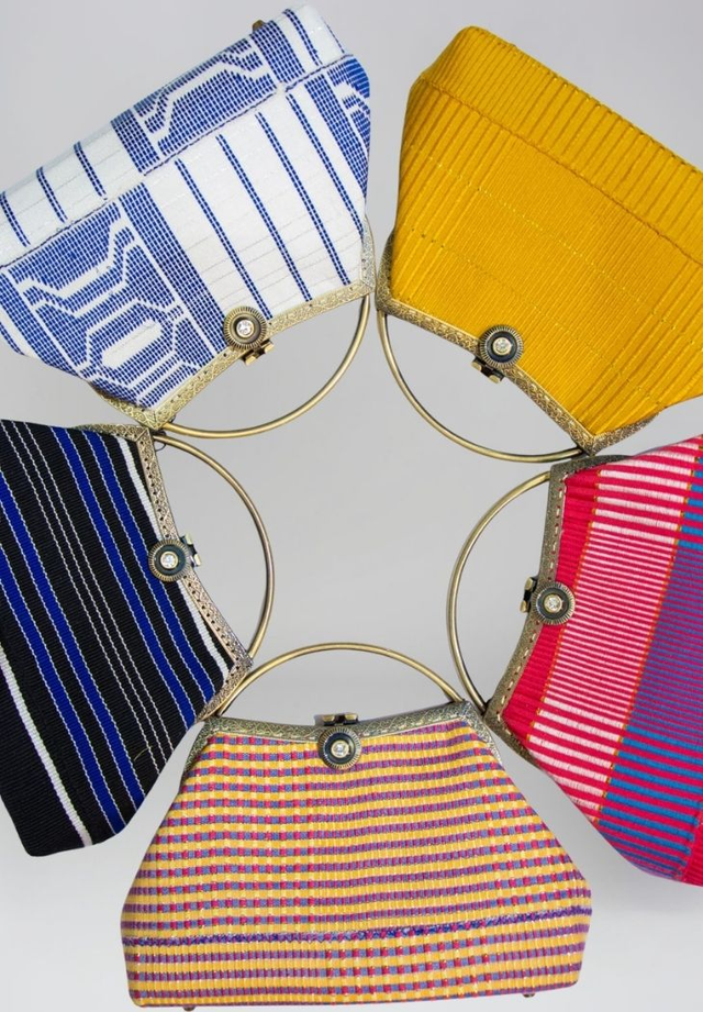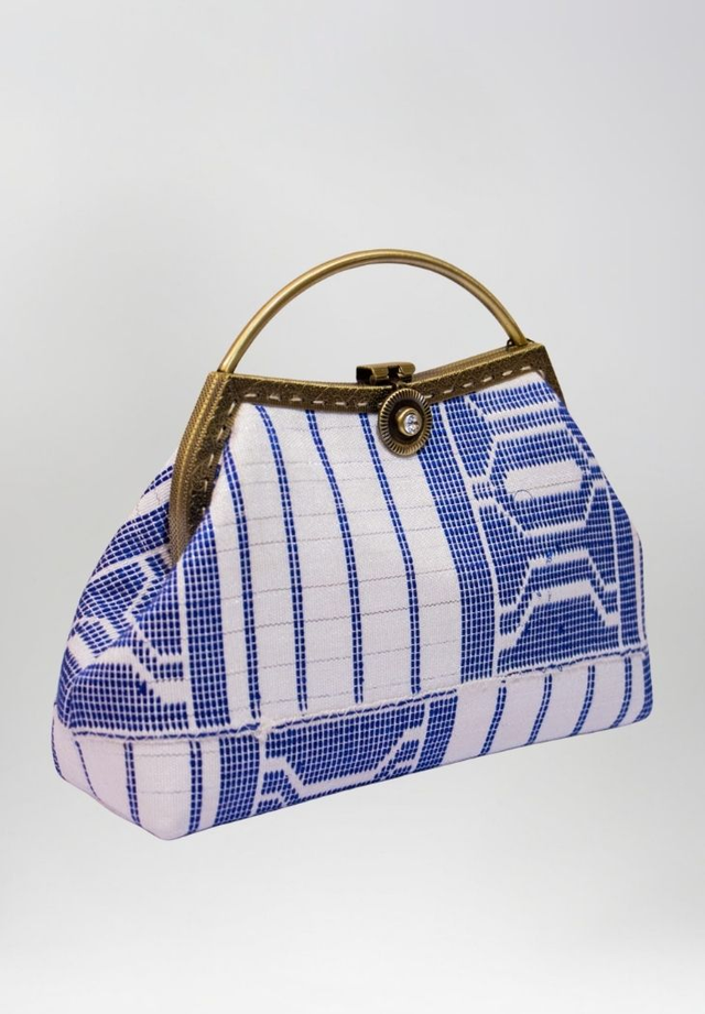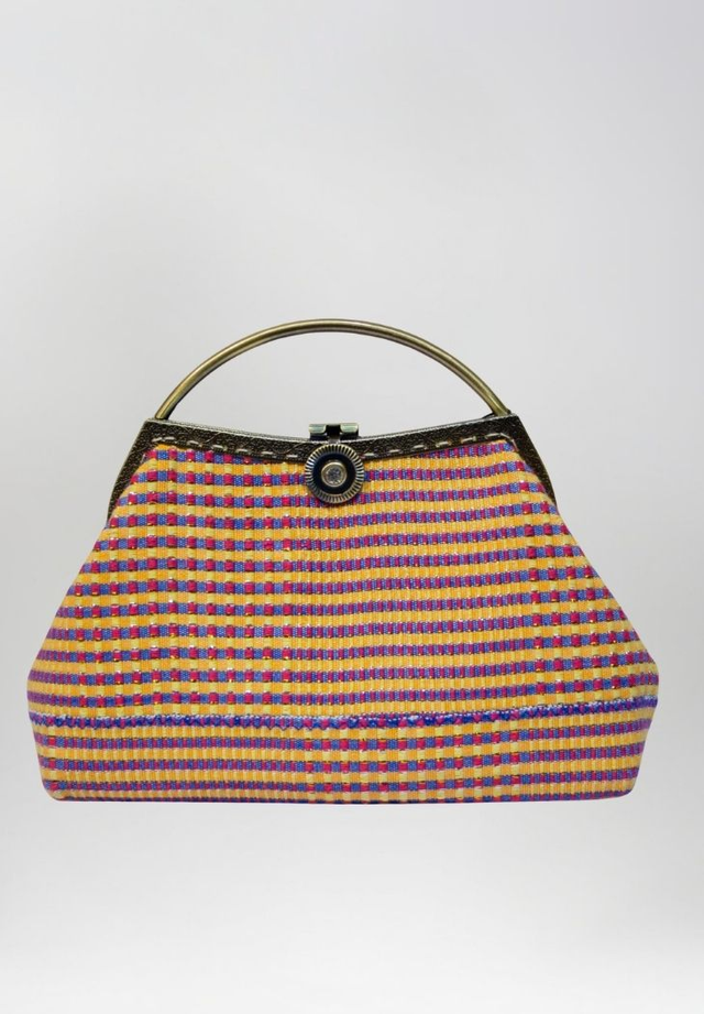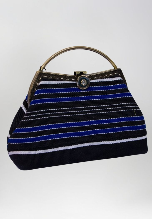 Ce sac à main en pagne tissé traditionnel (kita) incarne le savoir-faire textile d’Afrique de l’Ouest dans toute sa splendeur.